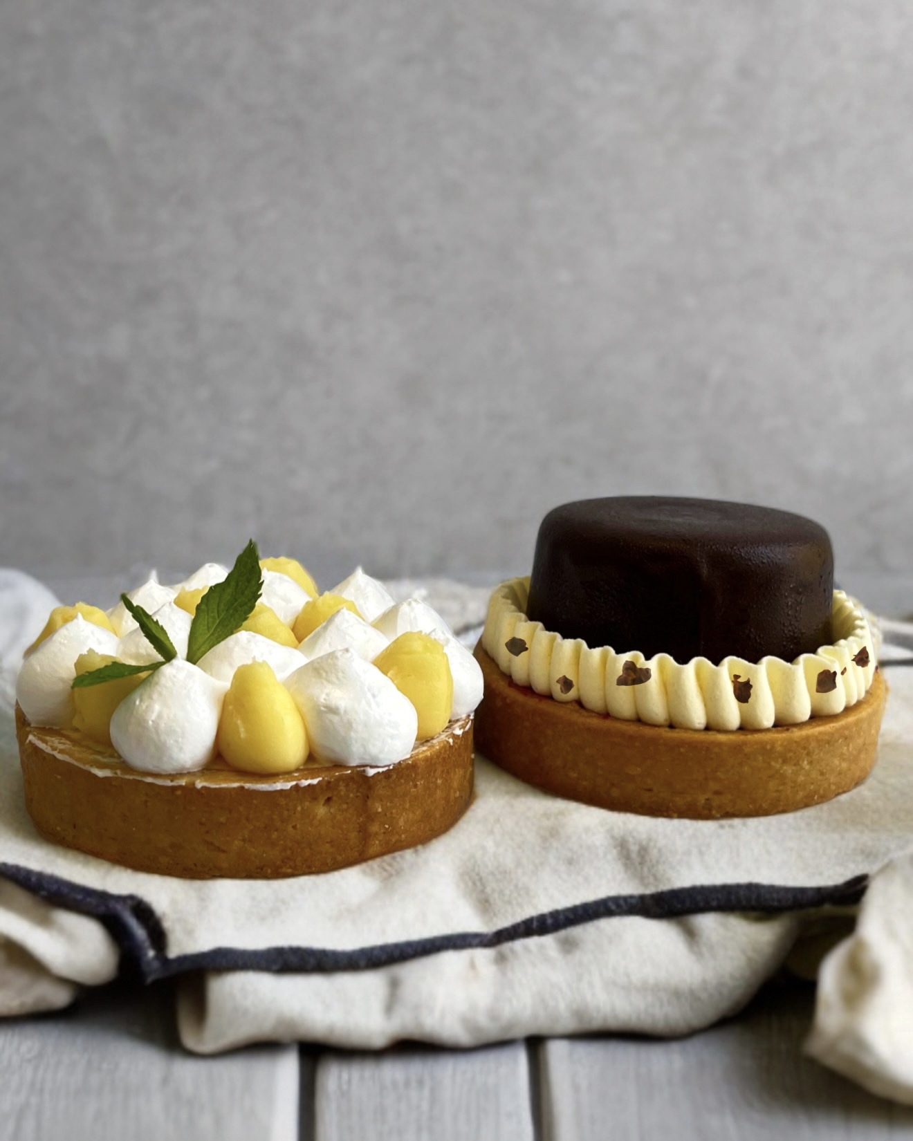 - Coco y limón (base crocante, cremoso de coco, curd de limón y merengue italiano).